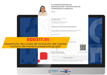En CREA contamos con la certificación como Centro Evaluador de Competencias Laborales, lo que nos permite evaluar y acompañar procesos de certificación basados en Estándares de Competencia del Sistema Nacional de Competencias (CONOCER).